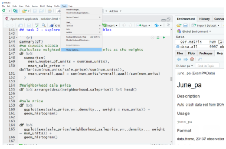 Next you need to set the R library. R code is organized into libraries. You want to use the same code that will be on the Prometric Computers. It would require installing older versions of libraries. Change your R library to the one which was included within the Modules of SOA.